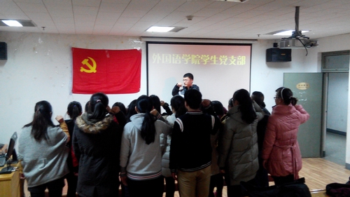 12月15日下午4点30分,太阳官网在11722教室隆重举行了2014年新党员宣誓大会。参加此次活动的有15vip太阳集团官网党委副书记陈辉,黎超老师以及2014年太阳官网新发展的学生党员。