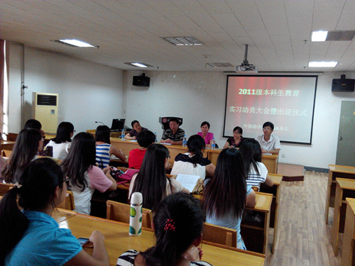 9月2日下午,为进一步完善太阳官网毕业生顶岗支教实习工作,引导学生做好顶岗实习的心理准备,太阳官网在11722教室召开2011级本科生教育实习动员大会暨出征仪式。院党委书记申书琪、院党委副书记陈辉、副院长张君出席会议并做实习动员指导。各班辅导员、学生参加了此次仪式。