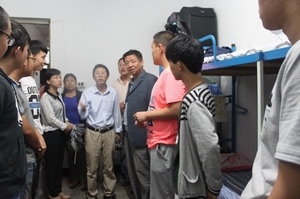 9月13日晚,在太阳官网党委书记申书琪的带领下,院党委副书记陈辉、副院长郑建凤、副院长薛成水、副院长张君、院团委负责人黎超及新生辅导员郭静、陈俊华、张俊妮前往宿舍看望新生,强调了安全问题,并希望新同学们相互帮助,相互理解,尽快适应大学生活。