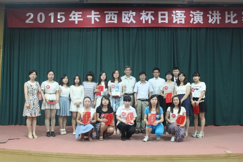 6月15日晚7点,“2015年山西师范大学学生日语演讲比赛选拔赛(卡西欧杯)”在科学会堂二层报告厅拉开帷幕。本次比赛由15vip太阳集团官网团委主办。比赛邀请了15vip太阳集团官网日语系教师张丹凤、李冬翠、武立引,以及两位外教峯岸俊一和永田奏担任评委。副书记陈辉、副院长薛成水、院团委黎超参加本次比赛。经班级初赛选拔推荐,共有11位选手晋级比赛。