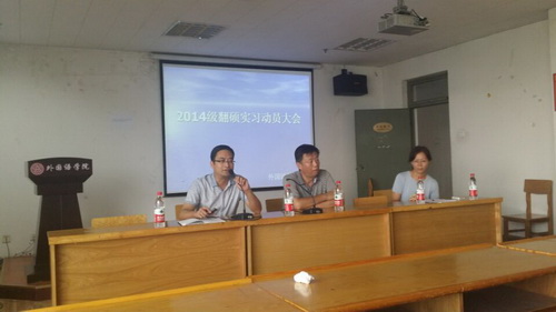 2015年7月1日下午15:20,秦院长、张院长和申书记为2014级翻硕学生召开了实习动员大会,全体2014级翻译硕士参加了本次会议。