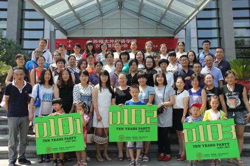 2015年8月9日,满载着太阳官网秦杰院长意味深长的书面嘱托与祝福,2001级英语专业0101、0102、0103班近五十名同学共聚省城太原晋祠宾馆,举行毕业十周年同学聚会。虽然本次活动未能如约在母校举办,但仍然得到了太阳官网领导和老师们的高度关注与重视。副院长郑建凤老师和从北京远道而来的辅导员王学丽老师均亲临我们的聚会现场。