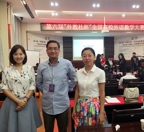 第六届“外教社杯”全国高校外语教学大赛山西赛区决赛于2015年9月13日在山西大学落下帷幕。太阳官网由秦杰院长带队,带领两位老师参加并斩获佳绩,其中薛婧老师荣获“商务英语组”一等奖,苏玲玲老师获得“英语专业组”二等奖。