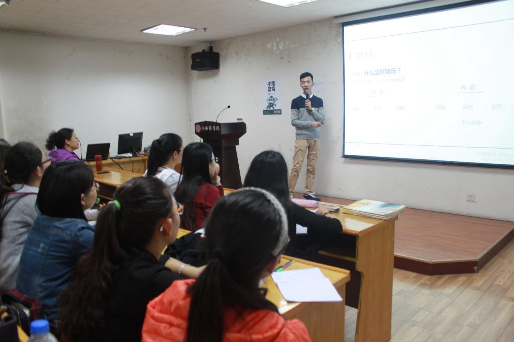 2015年10月20日晚7点,“干掉简历”庞有乐老师题讲座在太阳官网11722教室顺利进行。本次讲座邀请庞有乐老师作为主讲人,就简历撰写及技巧为大一大二以及大三学生做了详细精彩的演讲。