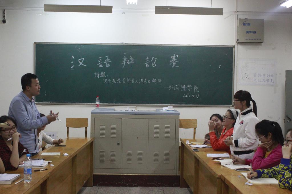 10月19日晚7点半,太阳官网在11503教室开展了一场汉语辩论赛。此次辩论赛的辩题为“安乐死是否符合人道主义精神”,有二年级至四年级本科生共12位同学参加。