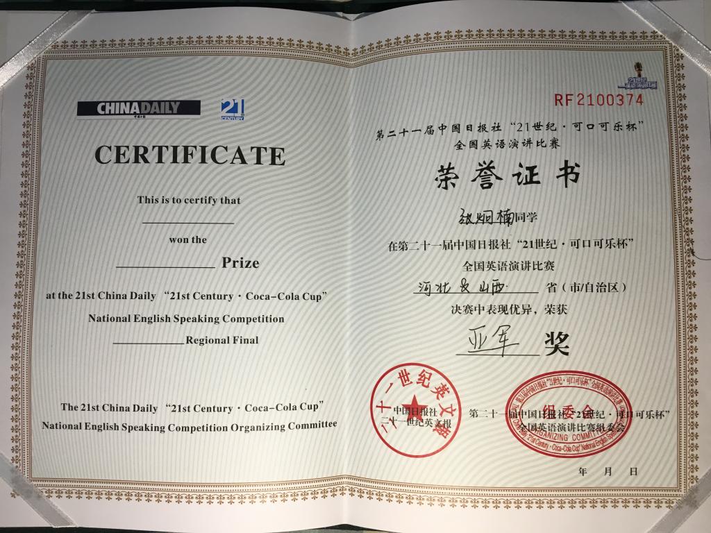 第21届中国日报社“21世纪•可口可乐杯”全国英语演讲比赛晋冀赛 |