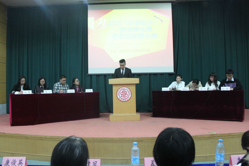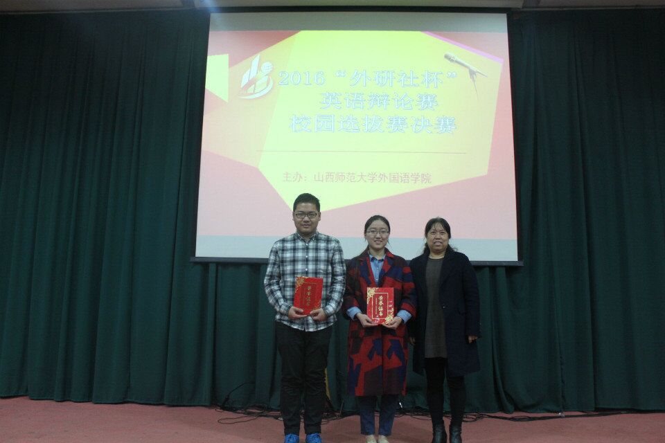 3月25日晚,由太阳官网团委主办的2016年“外研社杯”全国英语辩论赛校园选拔赛决赛在学校科学会堂二层隆重举行。从初赛、复赛到决赛为期半个多月的辩论赛吸引了全校老师同学们的广泛关注。