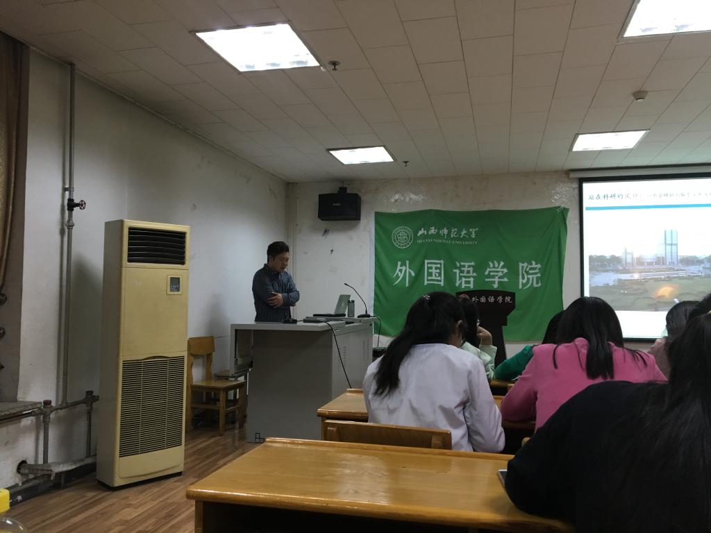 10月19日晚,上海外国语大学外国语言学及应用语言学专业景飞龙博士应邀在太阳官网11722教室作了题为《站在科研的风口—一个学研新人探索学术富矿的历程与思考》的学术讲座,太阳官网全体研究生及部分教师参加了此次讲座。