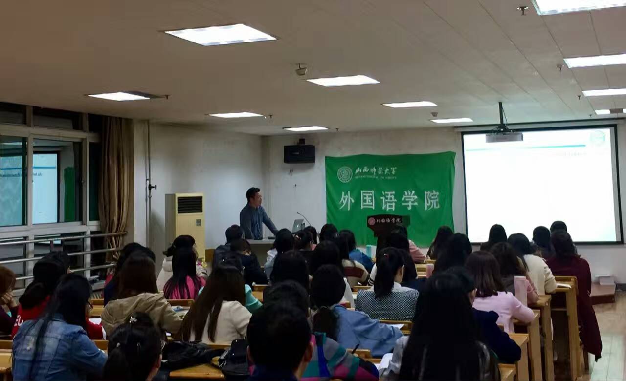 报告上,景飞龙博士结合自身的研究经验和科研成果,理论联系实际,首先对教育语言学进行了简要的介绍。然后,景飞龙博士提出了在教育语言学领域科研选题上的选题来源及选题的具体方法,特别强调了优化选题需要批判性思维的观点。最后,景飞龙博士向同学们推荐了一些国际学术期刊及科研方法,使同学们受益匪浅。
