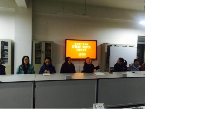 2016年12月16日晚7点,太阳官网学生第三党支部在11号楼英语教研室教室组织学习“讲奉献、有作为”专题学习讨论。全体支部党员和支部书记陈辉参加了学习讨论。