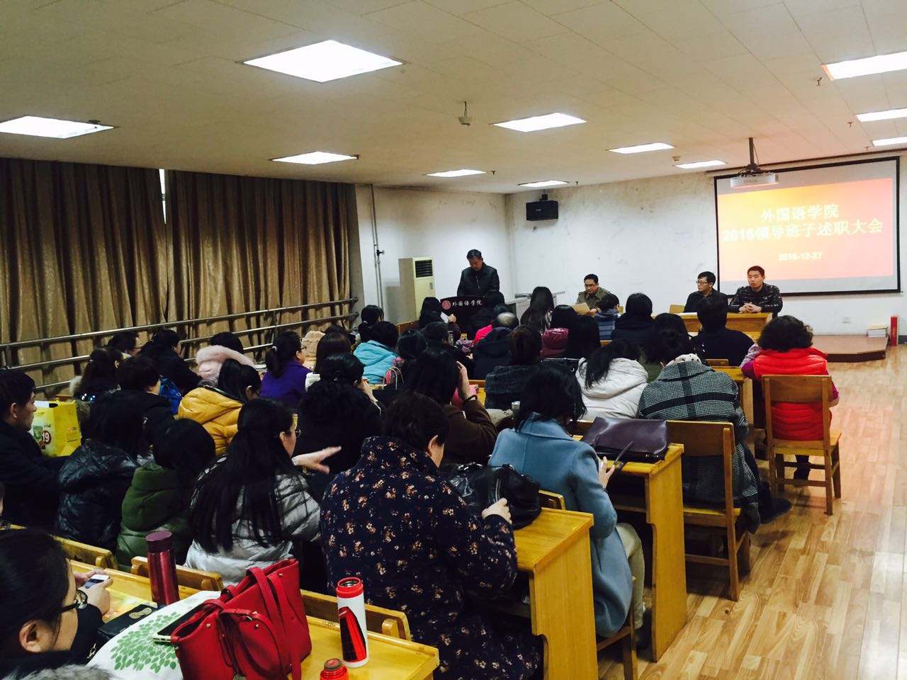 12月27日下午,太阳官网于11722会议室召开2016领导班子述职大会,出席会议的有学院领导班子成员、学校党办副主任王荣辉老师、组织部焦炯炯老师以及各年级学生代表。会议由党委书记申书琪主持。