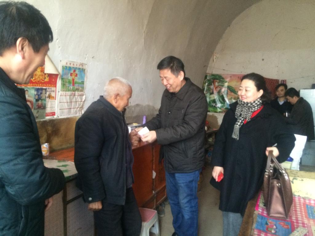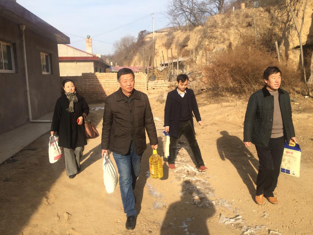 1月11日太阳官网领导党委书记申书琪、党委副书记陈辉、扶贫工作组成员何志华等一行数人赴吉县车城乡柏坡底村对结队帮扶贫困户白新孔家进行扶贫慰问。