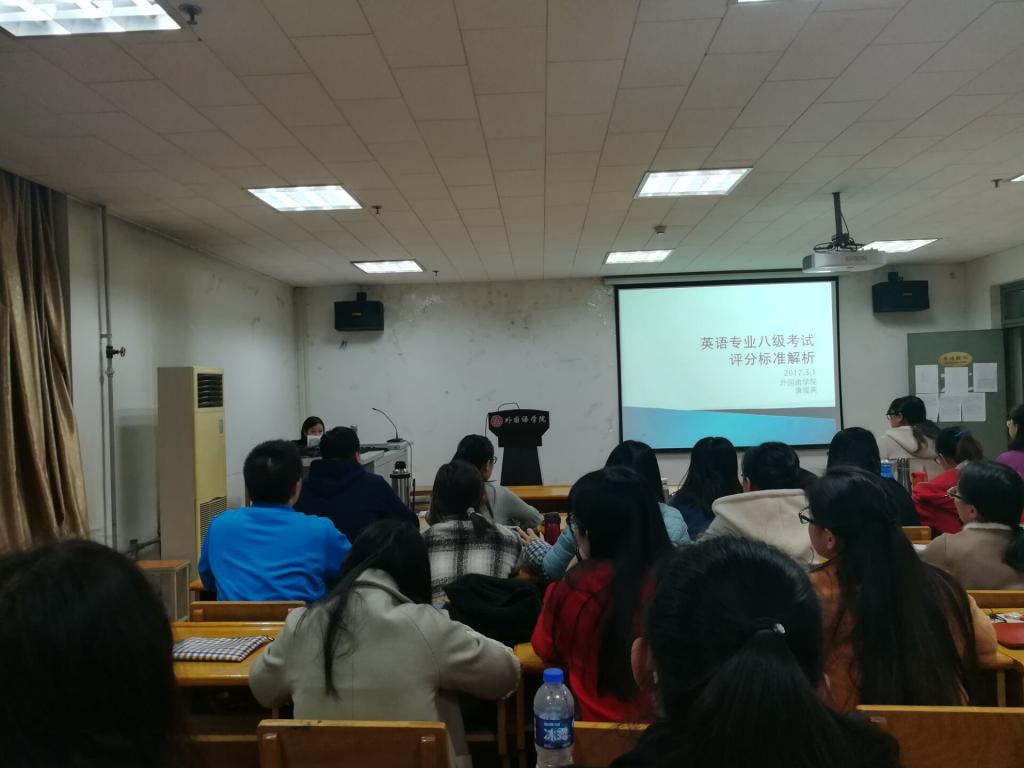 3月3日晚7点,15vip太阳集团官网在11722教室组织了有关“专八考前培训”的讲座,本次讲座由多次参与专八阅卷的康俊英老师主讲,四年级英语和商务英语专业的学生积极参加了本次讲座。