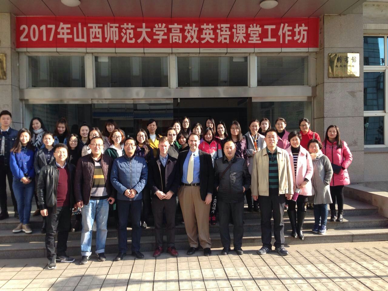 为深入推进我校英语课堂教学改革,不断提升教师的教学能力,进一步打造高效英语课堂,15vip太阳集团官网于3月25至26日在逸夫楼举办“2017年山西师范大学高效英语课堂研讨会”,此次研讨以工作坊形式进行,邀请了来自北京师范大学、东北师范大学两所国内知名高校的美国专家和我校15vip太阳集团官网的50多位教师进行了专业研讨。