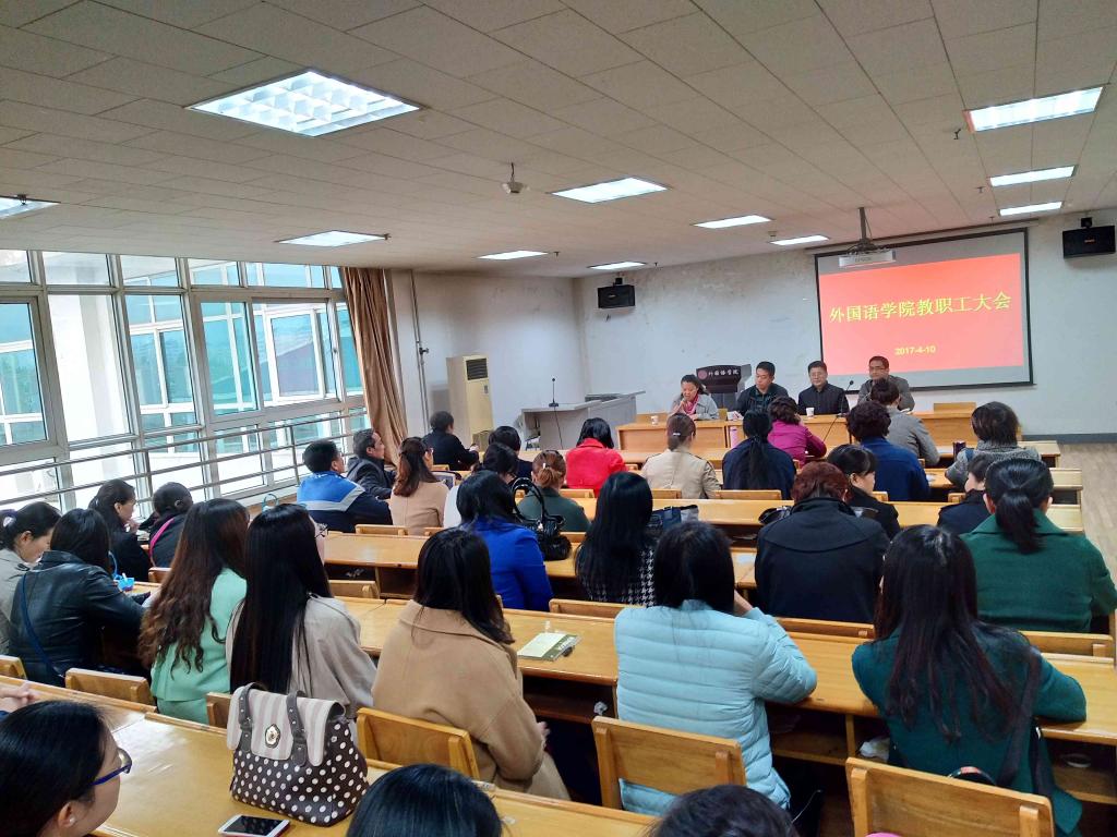 4月10日下午,15vip太阳集团官网在11722会议室召开了全体教职工大会,校党委副书记薛耀文出席会议,会议由学院院长秦杰主持。