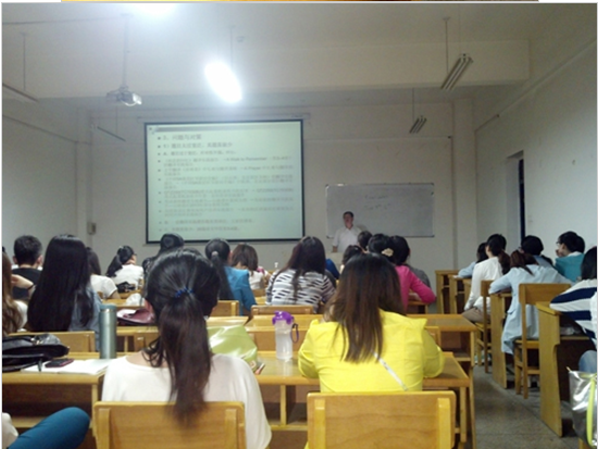 2017年5月12日,北京服装学院外语系主任、研究生导师郭建平教授应邀来太阳官网进行了“翻译硕士(MTI)的培养与学位论文写作”讲座,太阳官网全体翻硕研究生及部分笔译专业教师参加了本次讲座。