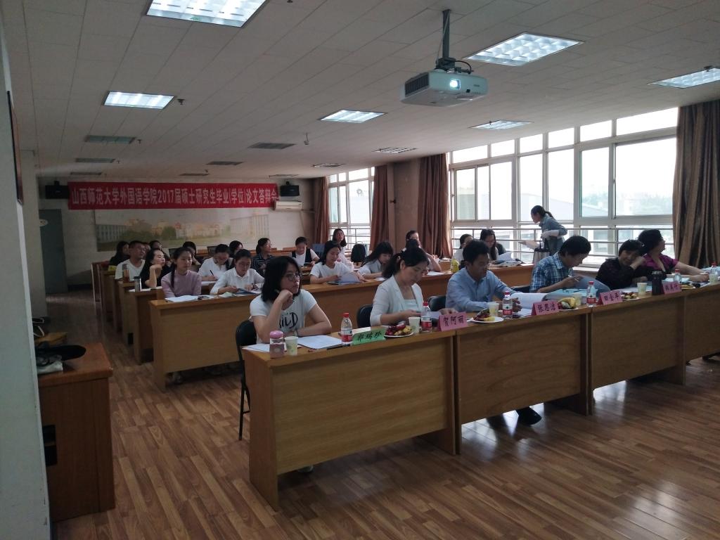 5月22日上午8:30,15vip太阳集团官网2017届外国语言学及应用语言学专业(英语)专业研究生毕业论文答辩会在逸夫楼如期举行。此次答辩会分为两个会场,以张思洁、田金平等五位答辩专家组成的第一会场在11722室举行。第二会场在11609室,则由王庸,秦杰等五位答辩专家组成。太阳官网部分教师和研一学生参加了此次答辩会。
