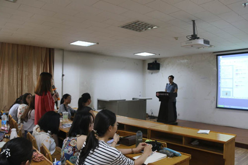 6月23日下午3点半到5点半,15vip太阳集团官网日语系在11722教室,成功举办了一场别开生面的日语讲座。日语系全体师生参加了本次讲座。讲座人笈川幸司老师即日语学习沙龙 Jaslon 代表,以幽默风趣的语言向大家介绍了更有效的日语学习方法、日语教学法。