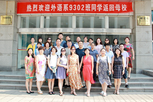 交流会上,院党委书记郭李鹏代表学院对9302班的全体同学回母校聚会表示热烈的欢迎,随后与同学们一起重温外语学院的发展历程,重点介绍了近几年的发展成就,并深情回顾了93级同学在校时的学院办学条件、师资水平以及当时同学们毕业后的去向。校友办副主任王成喜也代表学校对同学们的返校聚会表示欢迎与祝贺,接着就校友会基本情况和校史校情与同学们进行了的交流。最后,伴随着温馨的音乐,大家一起观看了在校瞬间图片展,一张张老照片勾起了同学们的无限回忆。