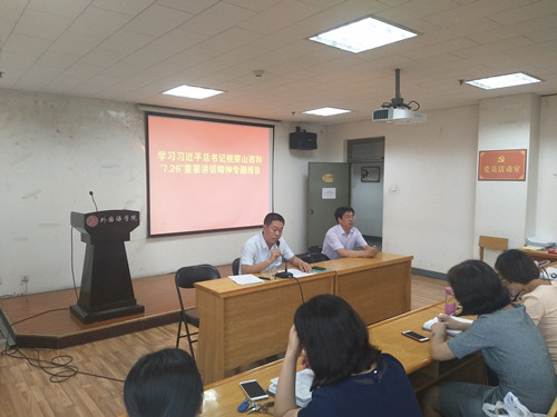 赵院长主要从习近平总书记视察山西的重要背景、习近平总书记视察山西重要讲话内容、贯彻习近平总书记重要讲话精神三个方面给大家做了一场精彩纷呈的报告。最后他说到总书记对山西寄予厚望,时代赋予山西改革发展难得的机遇,让我们更加紧密地团结在以习近平同志为核心的党中央周围,深入学习贯彻习近平总书记视察山西重要讲话精神和7.26”重要讲话精神,决不辜负总书记对山西的期望和重托,在省委和校党委的领导下,紧紧抓住机遇,勇于改革创新,果敢应对挑战,善于攻坚克难,进一步把山西的事情办好,把学校的事情办好,以优异成绩迎接党的十九大胜利召开。