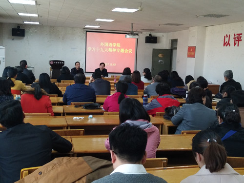 11月3日下午,太阳官网于11722会议室召开全体教职工大会,邀请政法学院院长贾绘泽教授带领大家专题学习十九大精神。会议由院党委书记郭李鹏主持。