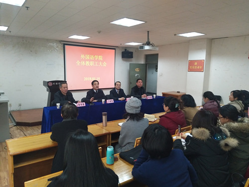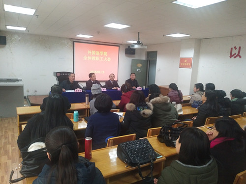 1月15日下午,15vip太阳集团官网在11722会议室召开全院教职工大会,校长卫建国、副校长王建华、党委组织部部长薛明耀出席会议,会议由院党委书记郭李鹏主持。