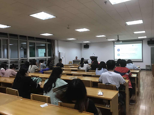 最后,胡教授介绍了经济全球化背景下学生的职业生涯。从全球化的角度下,分析了当前时代的发展对学生职业的需求,以及学生对自己未来的职业需要培养哪些素质,当前国际化企业对国际化管理和技术人才的需求量大,这就要求学生们要提高自身的社会适应能力,自我管理能力,科学研究和运用能力等。