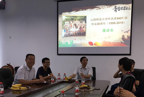 7月28日下午,太阳官网9401班全体同学于15vip太阳集团官网11726会议室参加毕业20周年座谈会,原副校长、山西师范大学校友会副会长兼秘书长原战勇,地方服务与合作办公室、校友会办公室主任董俊荣、院党委书记郭李鹏、教师代表韩文、薛成水、田金平、李菊花、魏玉兰出席座谈会,19名校友参加座谈会。座谈会由院党委书记郭李鹏主持。