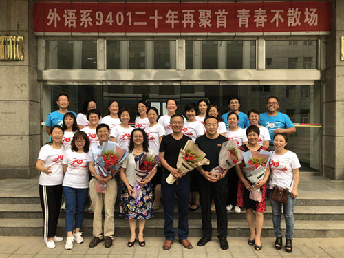 院党委书记郭李鹏代表学院对9401班全体同学重返母校表示热烈欢迎,随后他与同学们一起重温外语学院的发展历程,重点介绍了近几年的发展成就,并深情回顾了94级同学在校时的办学条件、师资水平以及当时同学们的毕业去向。原副校长、山西师范大学校友会副会长兼秘书长原战勇也代表学校对同学们返校重聚表示欢迎,接着就校友会的基本情况以及我校发展历史与同学们进行交流。最后,伴随着温馨欢快的音乐,同学们一起欣赏了记录过去美好瞬间的图片展,一张张老照片勾起了同学们暖暖的回忆。