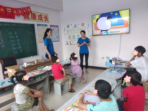 此次实践活动中,团队成员分为三组,分别针对不同年级的学生进行教学,通过唱英语歌、做英语游戏、表演英语情景剧等多元教学方式,带领学生们感受英语的魅力,引导他们在欢乐轻松的氛围中有效提升英语口语。课余时间,队员们和学生们一起做游戏、一起聊天,在关爱和陪伴中逐渐加深了彼此的感情。在最后的汇报表演中,学生们倾情演出,呈现出了最好的自己,真正做到了在学习中收获快乐,在希望中不断成长。