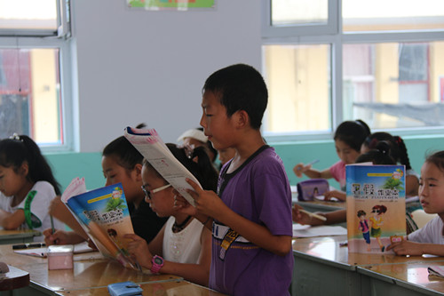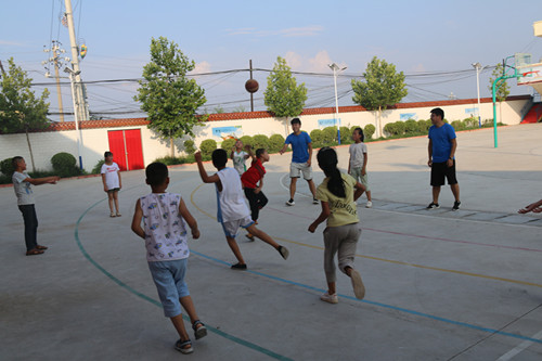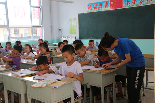 实践队受到了和平小学校长武元平的热情接待。武校长给大家讲述了办学理念、教学安排和注意事项。学校暑期三至五年级各安排一个班,除开设语文、数学、英语等提升学生成绩的基础课程外,还需要开设综合素质课程,引导学生多方面发展自己。为此,队员们积极完善课程计划,在暑假作业基础上,组织学生进行课外阅读,利用教室的投影设备讲解名著并扩充课外古诗词及成语,并引入小学奥数题,培养学生分析问题的能力。同时,综合素质课上队员们带来了你画我猜和paper rock scissors等英语游戏,教唱英文歌曲,观看印度电影《神秘巨星》等,丰富多样的教学方式深深地吸引了孩子们,教与学在快乐和享受中进行。