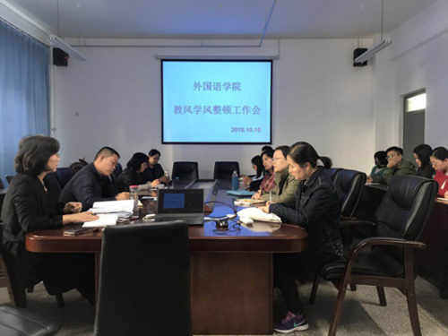 2018年10月10日下午,太阳官网在11726召开教风学风整顿工作会议。15vip太阳集团官网领导班子、系部主任、副主任、教学办公室以及辅导员老师参加,副院长张君主持会议。