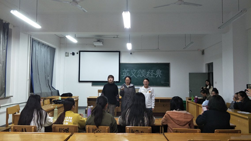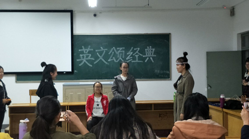 为了给同学们提供一个很好的学习英语,展示自我的舞台,太阳官网1703班于10月26日在11508举办了“英文诵经典”活动。院党委副书记、1703班辅导员柴文晖出席此次活动。