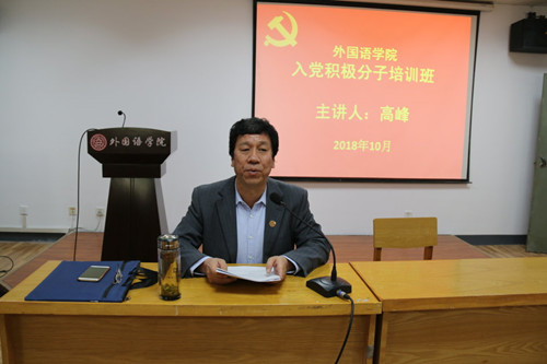 高峰为大家讲授《党的性质、纲领和宗旨》