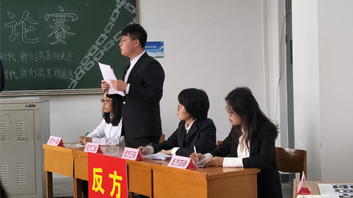 太阳官网分别于11月 15日和11月20日参加了中文辩论赛的初赛和加赛。赛前,在得知辩题和立场之后,太阳官网选手对辩论题目进行了一个详细的解析,从各个角度进行了材料的准备,大家互相进行多次交流,积极讨论辩论过程中可能会出现的难题。在辩论赛初赛和加赛中,太阳官网辩论队分别对战物信学院和文理学院的辩论队。辩论比赛一共分为陈词立论,一对一攻辩,自由辩论和总结陈词四个环节。在第一轮陈词立论环节,太阳官网一辩选手对辩题中的关键词和有争议的词都进行了详细的解释,为后续的一对一攻辩和自由辩论都夯实了基础。在第二轮一对一攻辩环节,二辩和三辩选手从容淡定,正面回答对方提出的问题,并向对方提出犀利的问题。在第三环节的自由攻辩中,辩论队的队员们积极思辨,从容应战。在第四轮总结陈词时,太阳官网四辩选手指出了对方的问题,再次陈述了我方观点,为我方的辩论做了细致的总结。