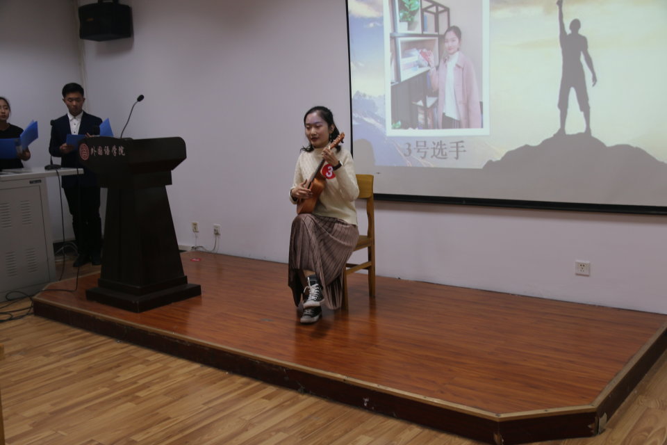 比赛共分为自我介绍、随机主持稿朗诵以及才艺展示三个环节。首先,参赛选手进行自我介绍。随后进行主持稿随机朗诵,包括中英文两种。中文朗诵的同学饱含激情,热情洋溢;英文朗诵的同学发音流利,标准,赢得了观众的一致好评。最后的才艺展示环节,更体现了参赛者的多才多艺。一段OURS的深情演唱,一段独具特色的SPEAKING SHOW,一场有民族气息的脱口秀表演等都为此次主持人大赛决赛增添了别样的风采。