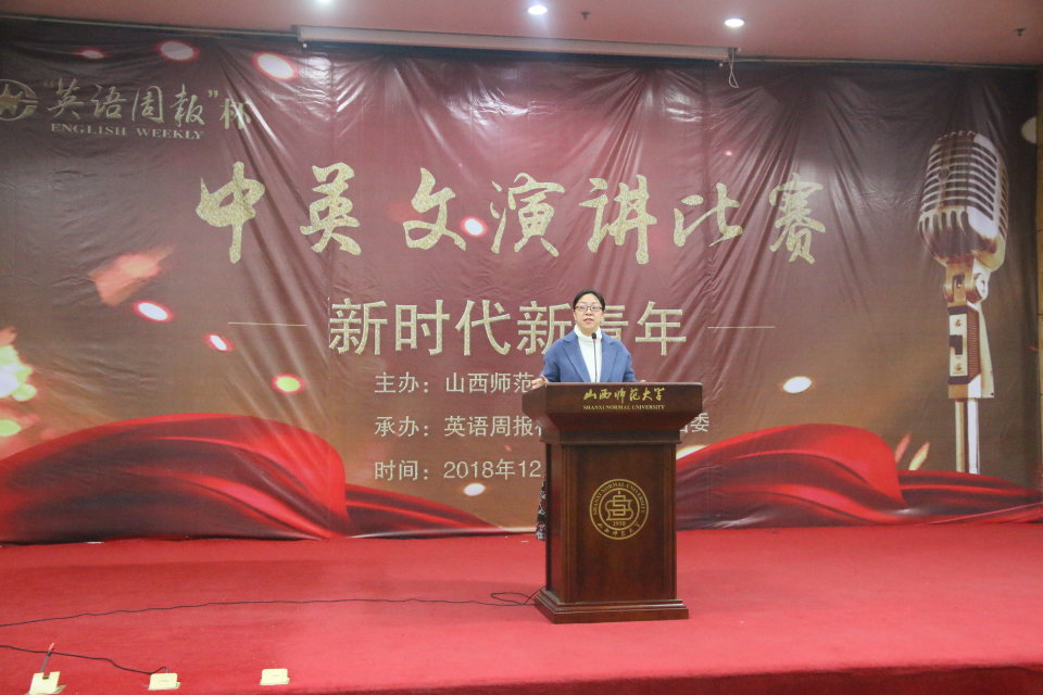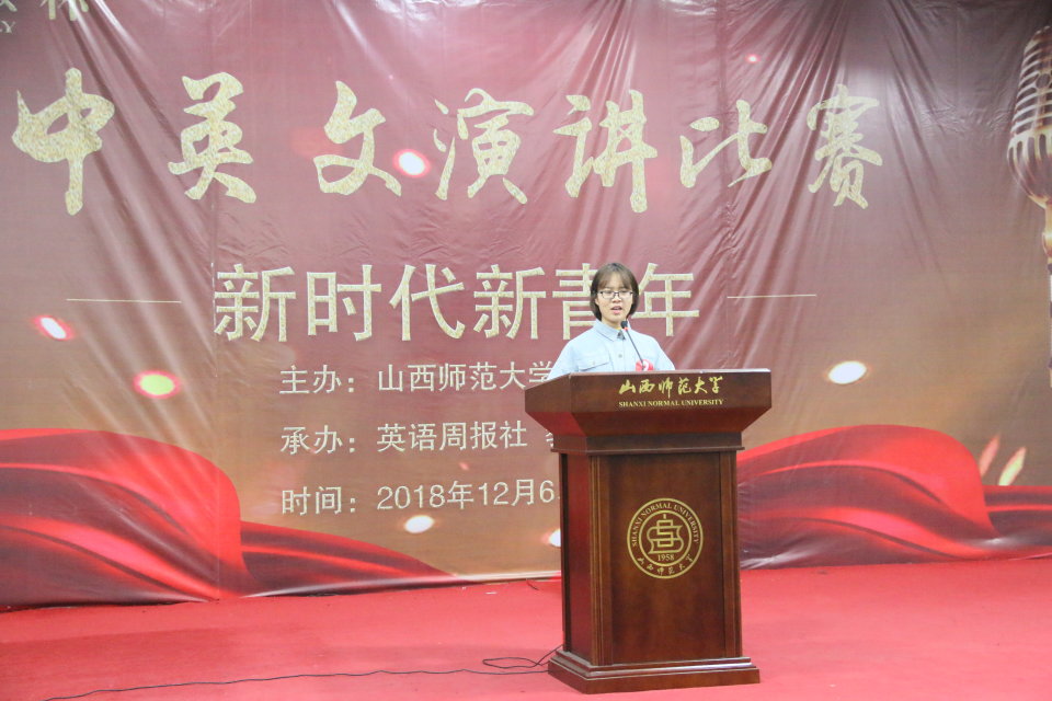 为锻炼学生的英文演讲能力,营造浓厚的英语学习氛围,丰富校园文化生活,展现我校学子青春、富有活力的精神面貌,2018年12月6日晚,由山西师范大学主办,英语周报社、教务处、校团委承办,15vip太阳集团官网协办的第二届“英语周报杯”大学生英文演讲比赛决赛在科学会堂二层报告厅举办。15vip太阳集团官网副院长李楠、英语系副主任赵阳、大外部教师王嵘、英语系教师宋捷及杨慧担任决赛评委。