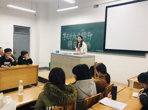 为深入贯彻落实党的十九大精神,教育引导广大青年学生将十九大精神融入日常学习生活中,15vip太阳集团官网1804团支部于12月17日在11518教室举办“践行新思想,拥抱新时代”团日活动。此次活动由团支书陈淑颖主持,支部全体成员及院团委黎超参加活动。