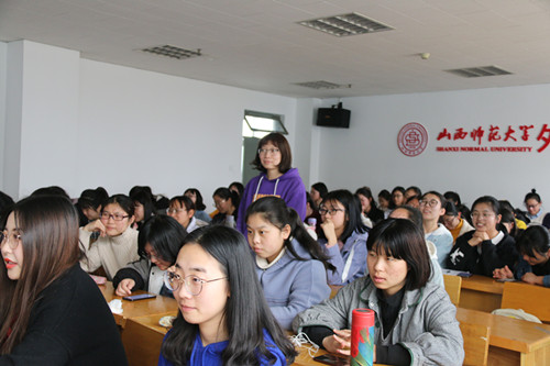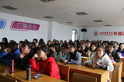 课堂伊始,主持人介绍此次培训内容,说明此次活动的目的在于让大家了解礼仪、发型、妆容以及服饰方面的相关知识,并用幽默风趣的语言介绍了本次主讲人。宇文扬帆,曾在欢乐谷模特大赛、太原国际马拉松形象大使选拔赛等比赛中获得多项荣誉。正式开讲后,主讲人先介绍了入座的基本礼仪以及世界各国礼仪的差异,并对女生基本坐姿进行了现场示范;然后,她提出应根据自身的脸型、气质找到适合自己的发型,还向大家分享了护发小技巧;紧接着,她对洁面、护肤、拍粉定妆、画眼影眼线、卷睫毛、画眉等进行了详细的讲解,并对化妆品的选择提出建议,应选择适合自己肤色的眉笔和粉底;最后,她建议大家注重自身形象,不要盲目追随潮流,要选择最适合自己的衣服。在提问环节中,主讲人为大家解答了有关护肤、化妆等方面的问题。课堂生动有趣,主讲人与同学们积极互动,气氛活跃。最后进入游戏环节,此环节包括两个游戏:“零零七”和猜五官。首先,主持人介绍了游戏规则,“零零七”和猜五官游戏主要考验大家的反应能力和应变能力,大家需在短时间内,根据对方指示,迅速做出反应。在了解游戏规则后,同学们踊跃参与,最终都获得了精美小礼品。