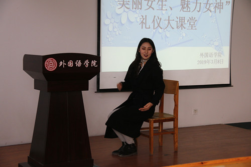 为进一步丰富太阳官网广大女生的校园生活,增强女生的自信心,塑造太阳官网女生“有个性、有才华、有魅力”的良好形象,太阳官网于3月8日在11722教室举办“美丽女生、魅力女神”礼仪大课堂,并邀请传媒学院学生会文艺部负责人宇文扬帆为大家作礼仪培训。