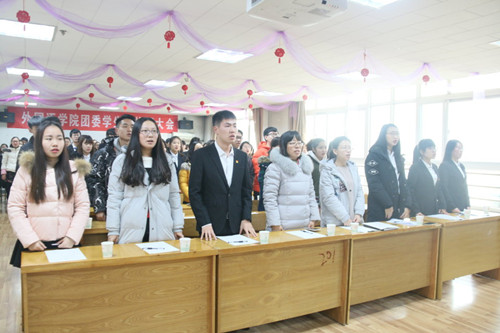 首先,主持人王梦茹介绍本次大会流程并宣布大会开始。会议议程第一项,全体起立,奏唱国歌。紧接着,上一届团委学生会主席15级徐源(2016.11.26—2017.12.29任职)进行工作汇报,对过去一年所有学生会成员的工作给予肯定,同时也分享了自己的工作经验,她相信新一届的学生会干部定会将学生会建设得更好。之后,院党委副书记柴文晖指出,学生干部都是德才兼备的优秀学生,当选学生会干部后要增强“四个意识”,继续完善提高自己、准确定位、引导同学和服务同学。会议议程下一项,黎超宣读新一届学生会干部名单。她指出新一届团委学生会干部要不忘自己的初心和使命,尽职尽责,继续努力工作。随后,新一届学生会主席杨方誉与团委郭青发言,对今后学生会和团委工作提出了自己的构想和计划,表达了努力工作的决心和信心。接下来,历史学院学生会主席尚祖超和校学生会主席赵君如上台发言,他们肯定了上一年度太阳官网学生会的工作,并对新一届院学生会干部就职表示祝贺,希望学院之间可以多加强合作和交流。会议最后,新一届学生会干部进行就职宣誓。黎超总结到,在今后的工作中,大家一是要相互配合,共同努力;二是要协调好学习和工作之间的关系,做一个能力强、素质高的优秀学生干部,使太阳官网学生会建设再上一个新台阶。