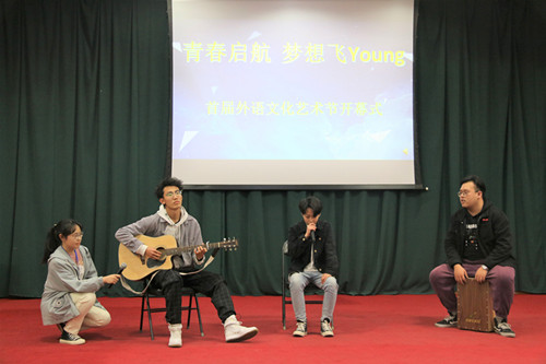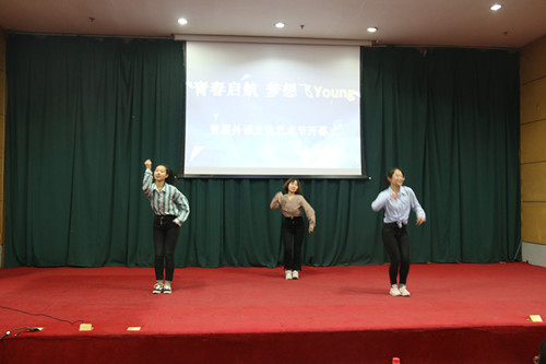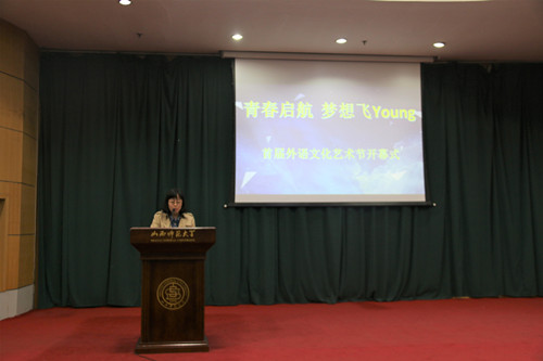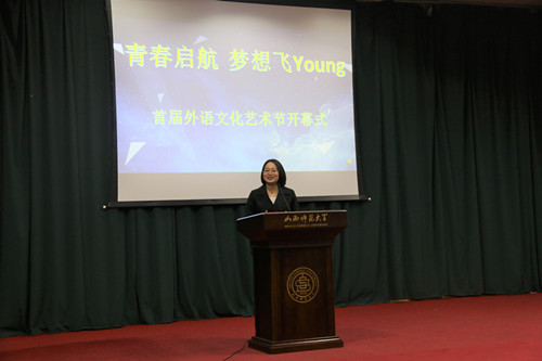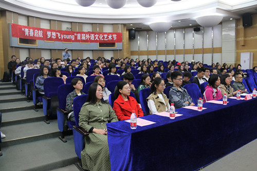 为在学校内营造浓厚的外语学习氛围,激发广大同学学习外语的积极性,进一步提高外语语言应用能力,同时为丰富校园文化生活,展现当代大学生健康向上的精神风貌,搭建大学生素质拓展的舞台,太阳官网于3月24日在科学会堂二层报告厅举办“青春启航·梦想飞young”首届外语文化艺术节。出席本次开幕式的嘉宾有院党委书记郭李鹏、院党委副书记柴文晖、英语系主任何正兵、大学外语部副主任席静以及辅导员老师们。此外,校学生会、校社联、校青协和各兄弟学院学生会代表也参加了本次开幕式。