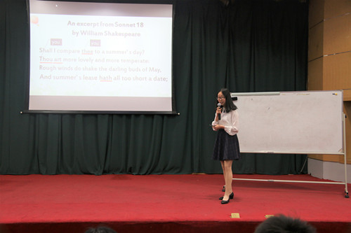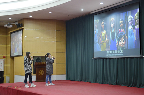 开幕式上,激情洋溢的开场舞《Dancing Blow》和动感十足的舞蹈秀《As if it's Your Last》使现场气氛一度得到活跃。精彩的英文配音表演《无敌破坏王》赢得观众阵阵掌声。独特的英文说课演示——《The Road to Modern English》彰显了太阳官网外语学子优雅得体的教学姿态和深厚的语言功底。特邀嘉宾留学生Mboup Abdoulaye(阿布)深情演唱中文歌曲《当你孤单你会想起谁》,优美的旋律回荡在整个礼堂的上空。抑扬顿挫的演讲展示《The Metaphor of Scopes》声声入耳,观众们忍不住为演讲者鼓掌喝彩。音乐学院个性乐队带来压轴表演《Real Friends》,开幕式在唯美清脆的歌声中拉下帷幕。