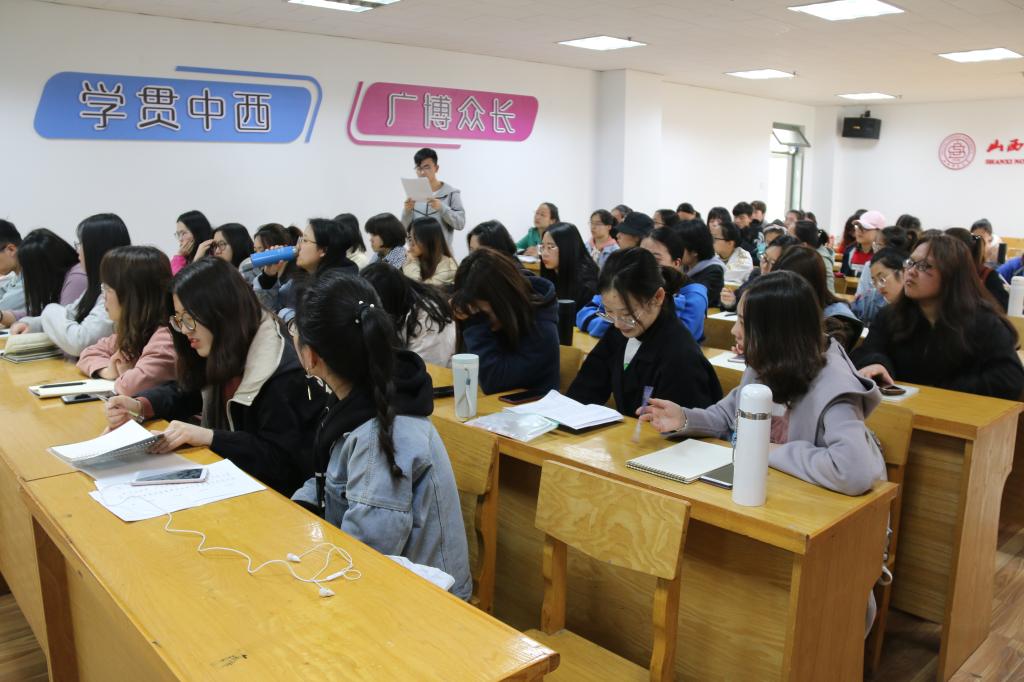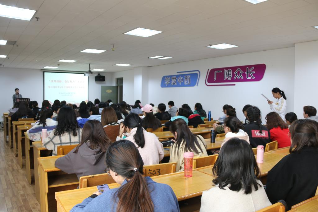 会上还邀请部分同学分享了习近平总书记讲话金句。大多数同学表示,作为师范生,在毕业后将从事与教育事业相关的工作,从现在起要以有理想信念、有道德情操、有扎实学识、有仁爱之心的“四有”好老师为标准,从各个方面增长知识才干,锤炼专业技能。部分同学则表示更愿意从事与商贸类相关的工作,他们表示要在日常学习生活中培养坚定的理想信念和爱国情怀,积极提升综合素质,为应聘自己向往的工作岗位做好准备。