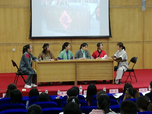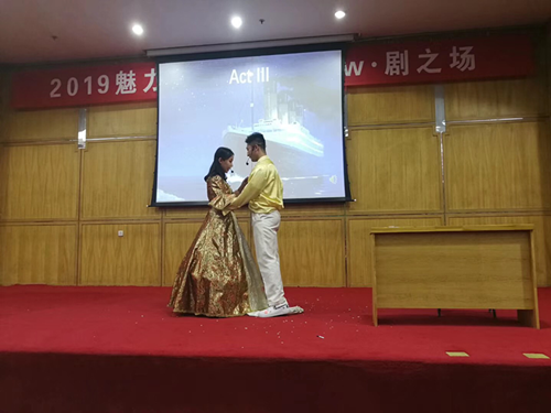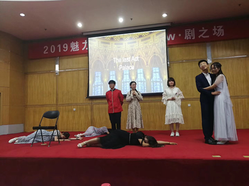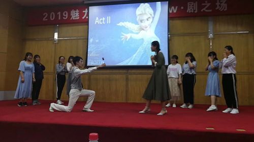 本次比赛在大家期待的目光中徐徐拉开帷幕。大赛采用淘汰晋级制,经过重重选拔,最终有5支队伍脱颖而出进入决赛,选手们以话剧的形式在舞台上演绎了《灰姑娘》、《荆轲刺秦王》、《赌圣归来》、《冰雪奇缘》和《泰坦尼克号》。