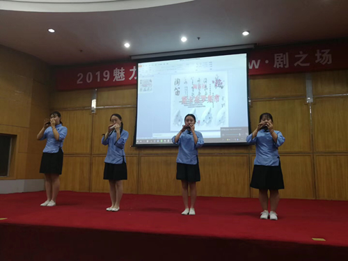全场表演以英文进行,同时穿插了歌唱、舞蹈、朗诵等多种表现形式,演员们的生动表演凸显了当代大学生青春飞扬的舞台表现力,其流利的英语、惟妙惟肖的表演、热情洋溢的活力,赢得了评委及在场观众的阵阵掌声和称赞。他们的表演精彩有趣、内容丰富,英语发音流利标准、钪锵有力,衣着形象落落大方,充分展现了当代大学生自信向上的姿态。选手们用诙谐幽默的语言、活泼生动的表情动作以及满腔深情演绎经典,推陈出新,扣人心弦!此外,比赛中场,陶笛社成员还为观众们献上了一曲英国民歌《斯卡布罗集市》,歌曲悠扬婉转,给人以心灵深处的触动。