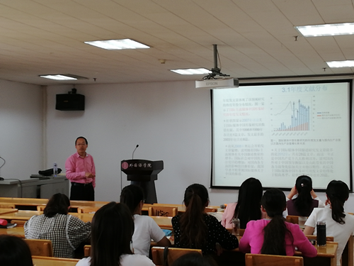 2019年5月17日下午15:00,西安工程大学胡伟华教授在逸夫楼722教室做了题为 “国际媒体中的中国形象研究现状的科学知识图谱分析” 的讲座,太阳官网部分教师、全体一年级研究生以及部分本科生参加了本次讲座。