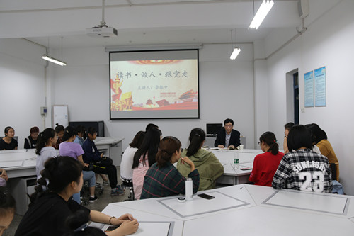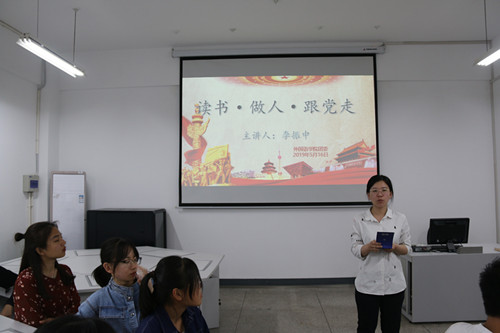 为进一步引领太阳官网广大青年大力继承和发扬以爱国主义为核心的五四精神,增强“四个意识”,坚定“四个自信”,5 月 16 日下午,太阳官网团委在11609教室举办“读书·做人·跟党走”主题团日活动,校关工委副主任李振中老师、院团委黎超和18级同学参加此次活动。