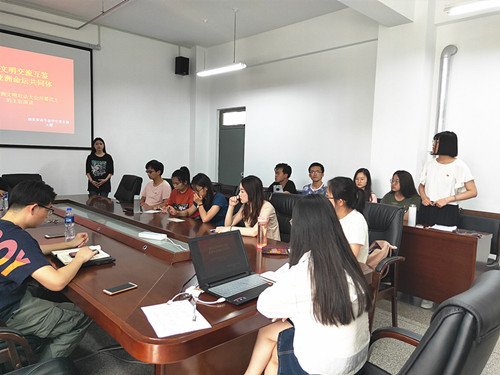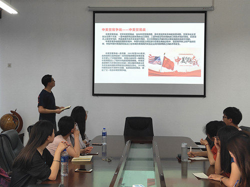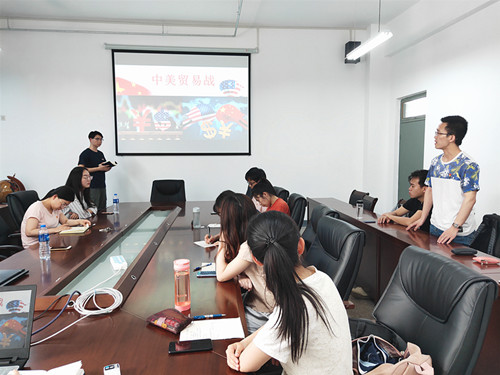 三位同学主讲结束后,全体党员对此次微党课展开交流讨论。郭海涛表示自己对“中美贸易战”也有关注,通过此次讲解,对贸易战的内容、形式及发展动态有了更加深刻的理解,并将持续关注下去,积极支持我国的一切行动。王琦认为各国文化虽然不同,但文明应该是包容的;我们应该心存敬畏,保护并传承优秀文化。