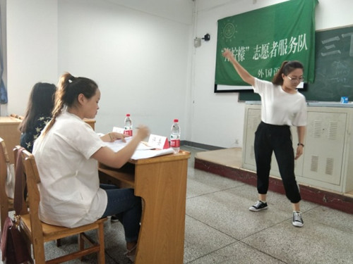 此次面试共分4个面试区同时进行,参与面试的同学需完成英文自我介绍,才艺展示,抽题讲解以及评委提问四个环节。评委们本着公平公正的原则,认真负责,严格选拔,分别从口语水平,教学水平和工作能力对选拔者进行打分。